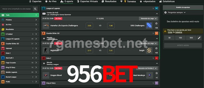 O 956Bet oferece uma grande seleção de opções de apostas em e-sports com probabilidades competitivas